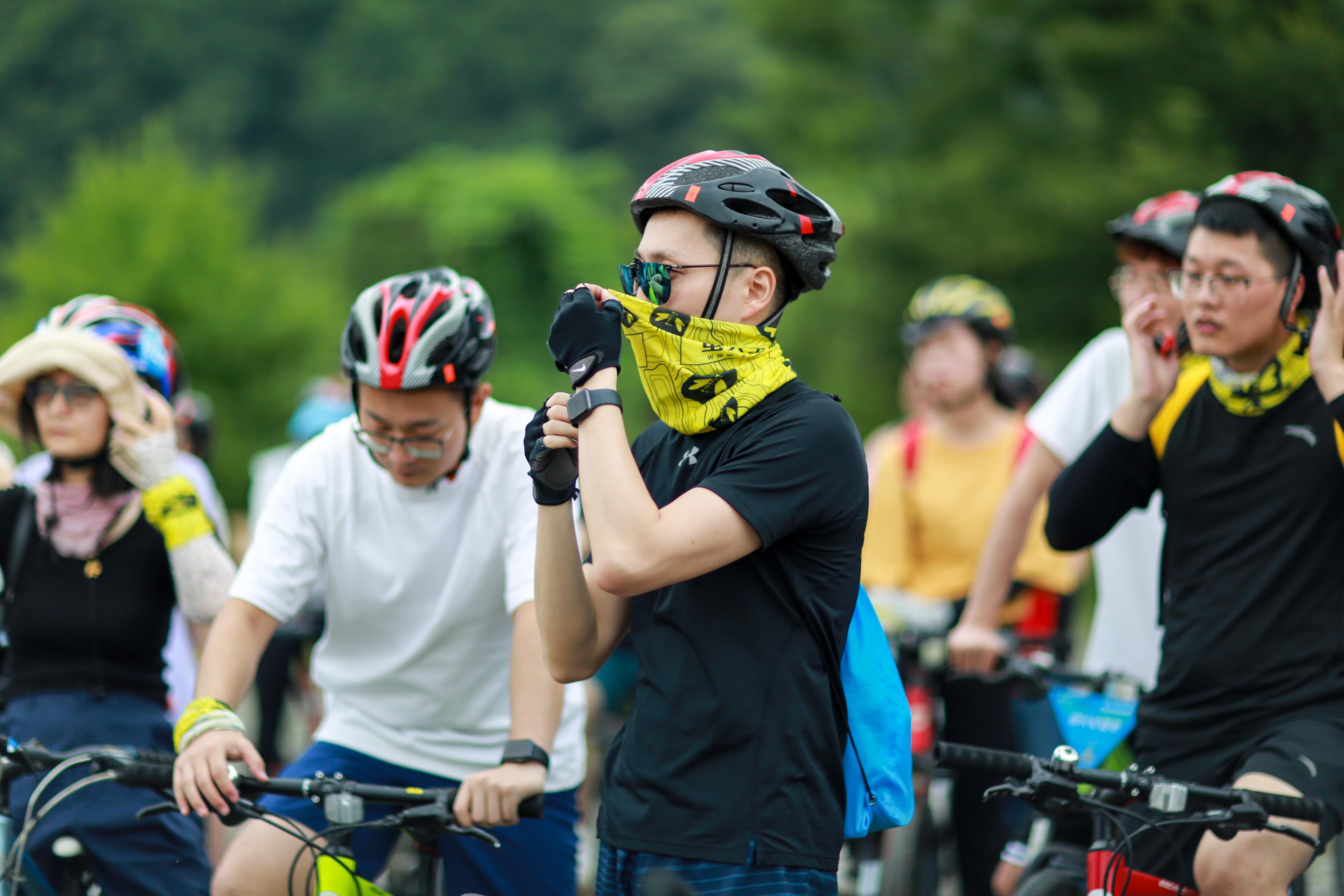 领骑教练在跟大家交待骑行过程中的注意事项。