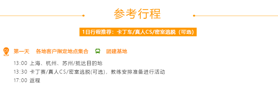 “3合1”的团队体验项目:卡丁车+真人CS+密室逃脱卡丁车15圈极速体验,挑战你的肾上腺素真人cs真实场景还原,仿真枪械,专业的教练团队。企业小伙伴相互PK,刺激有趣密室逃脱多类团队推理解谜游戏,各种故事线密室逃脱玩法,等你们来挑战!